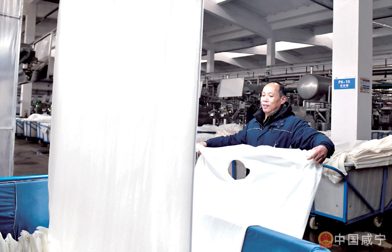2月9日,嘉魚經(jīng)濟開發(fā)區(qū),湖北嘉麟杰紡織品有限公司印染車間,工人們正在機器旁忙碌。
