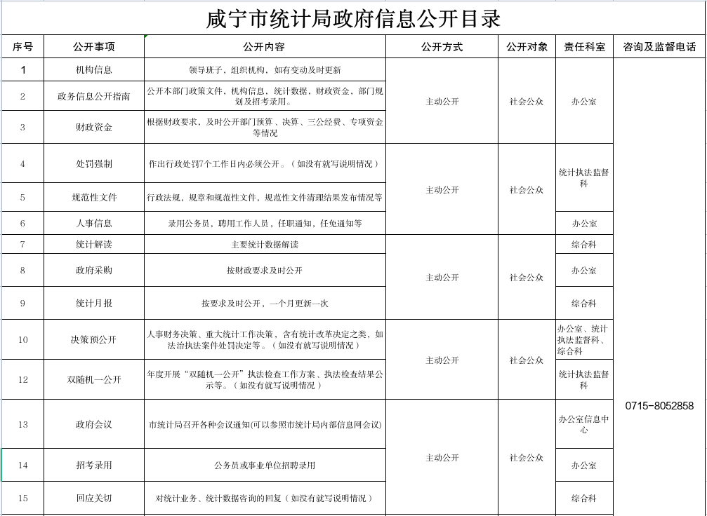 (2024年版)咸寧市統(tǒng)計(jì)局政府信息公開目錄