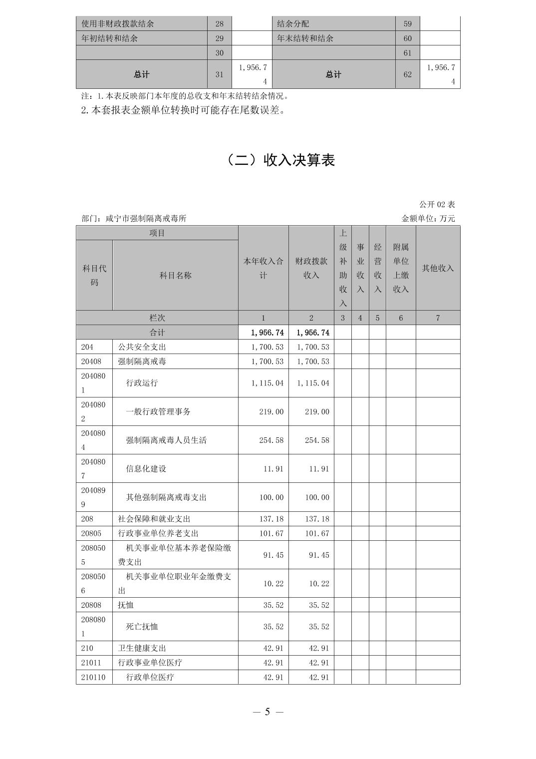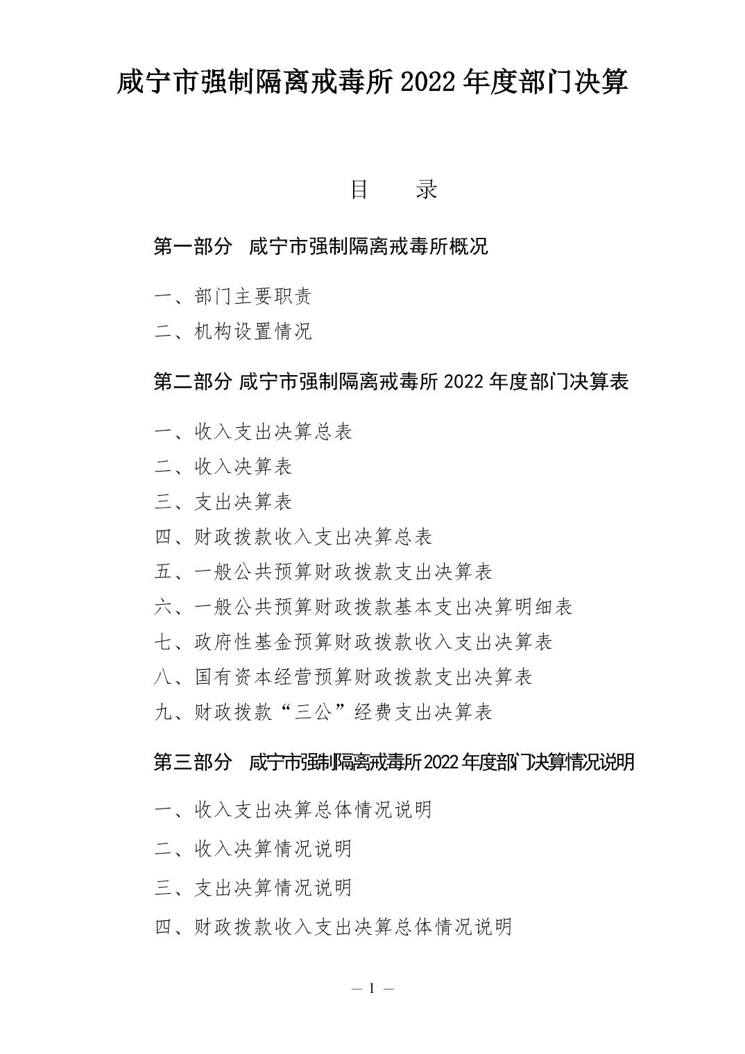 2022年度咸寧市強(qiáng)制隔離戒毒所決算公開