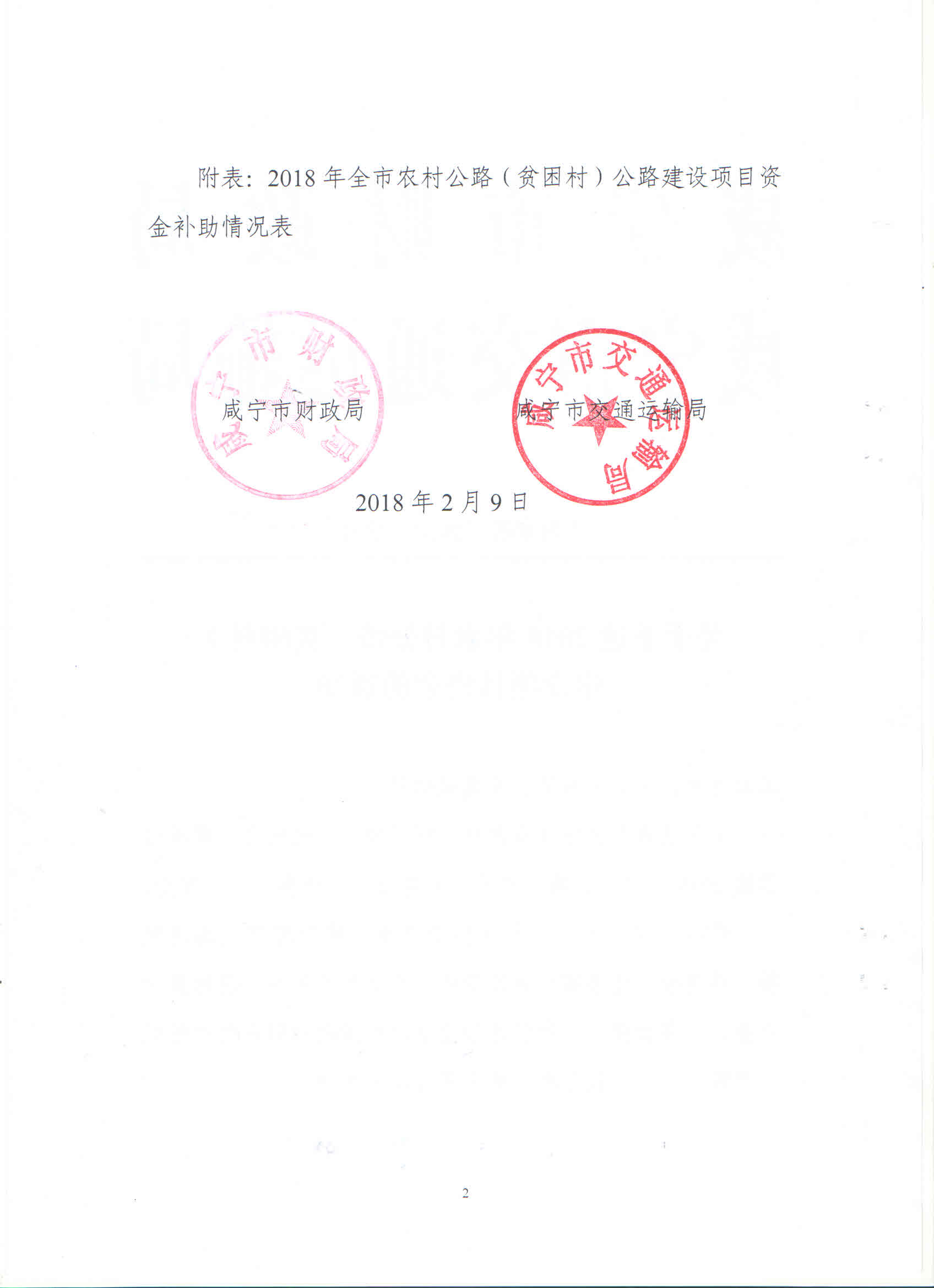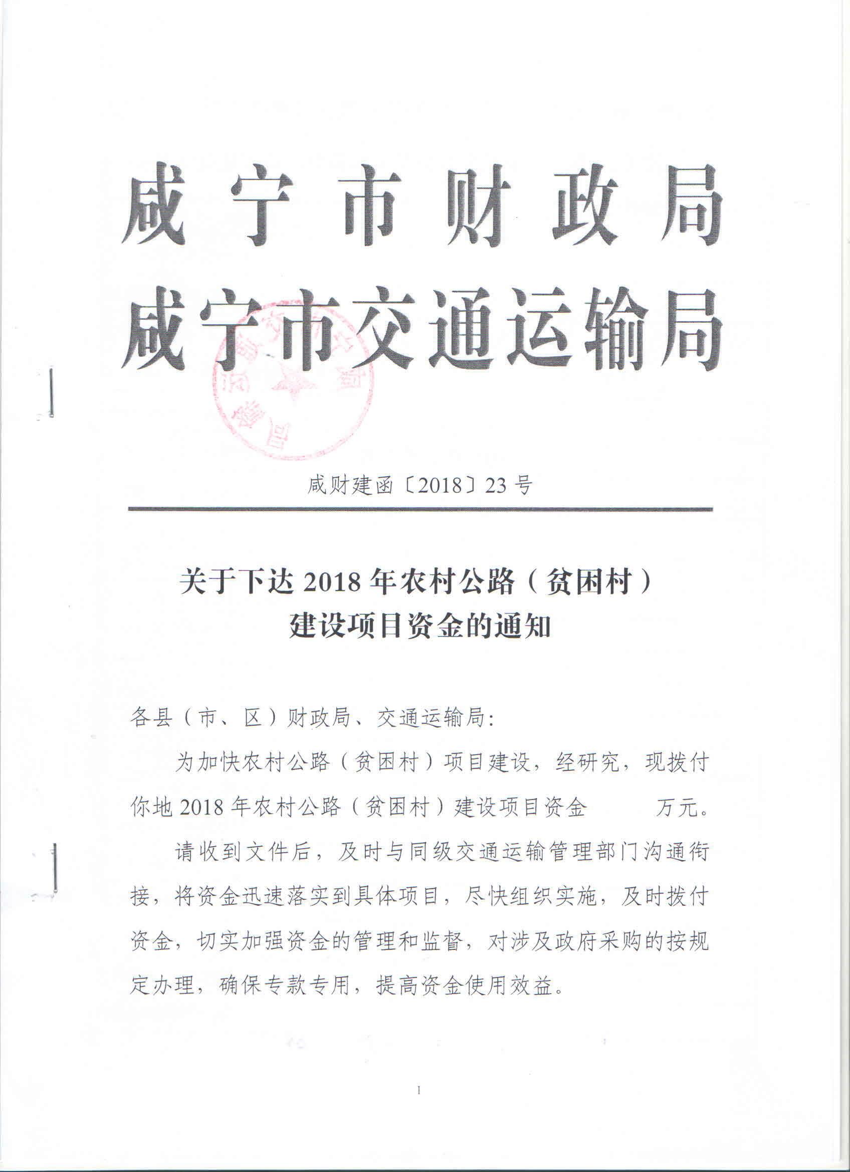 關于下達2018年農(nóng)村公路(貧困村)建設項目資金的通知