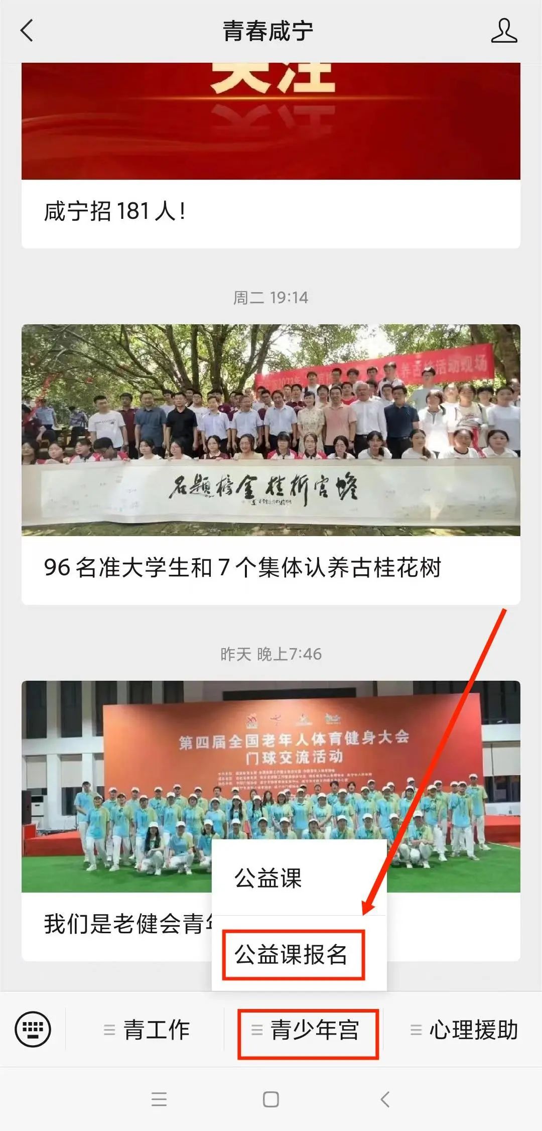 報(bào)名方式:從青春咸寧菜單欄的公益課進(jìn)入報(bào)名