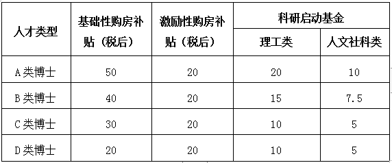 如夫妻雙方均為博士,且雙方均符合學(xué)校人才引進(jìn)計(jì)劃和政策要求,兩人分別按對(duì)應(yīng)政策給予購(gòu)房補(bǔ)貼和科研啟動(dòng)基金。如僅一方符合學(xué)校人才引進(jìn)計(jì)劃和政策要求,則符合條件者按對(duì)應(yīng)政策給予購(gòu)房補(bǔ)貼和科研啟動(dòng)基金,另一方按D類(lèi)博士對(duì)待。