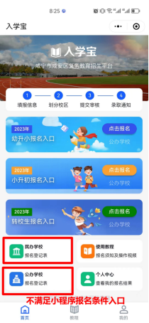 (不符合平臺報名條件者,掃碼進(jìn)入小程序首頁,選擇“公辦學(xué)校報名登記表”、“民辦學(xué)校報名登記表”,填寫后生成表格,手機(jī)截圖打印,攜帶至相應(yīng)學(xué)?,F(xiàn)場審核報名。)