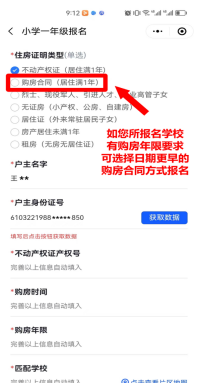 根據(jù)您的房產(chǎn),選擇房產(chǎn)類型。(如您所報名學(xué)校有購房年限要求,可選擇日期更早的購房合同方式報名。)