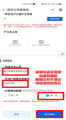 選擇房產(chǎn)對應(yīng)的水務(wù)公司,填寫繳費(fèi)編號,選擇繳費(fèi)時間(如您的房產(chǎn)是公共用水,水費(fèi)繳納標(biāo)號請?zhí)?00000,請?zhí)顚懻鎸?shí)信息,如虛假填報,數(shù)據(jù)比對有誤將延誤您的報名,如水費(fèi)繳納未滿1年,則無法提交,請?zhí)顚懯醉摗肮k學(xué)校報名登記表”、“民辦學(xué)校報名登記表”,打印后攜帶至相應(yīng)學(xué)?,F(xiàn)場審核報名)