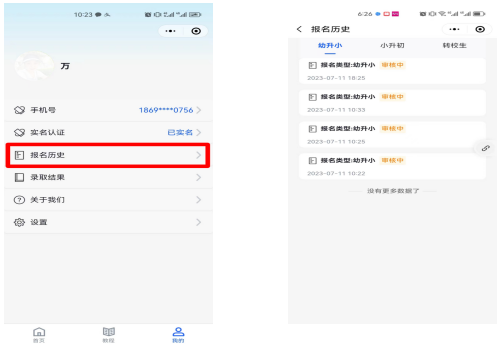 點(diǎn)擊“提交資料”,點(diǎn)擊“確定”允許審核狀態(tài)通知,提交之后等待校方審核,可在小程序首頁“我的”-“報名歷史”中查看審核情況。
