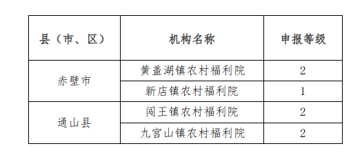 根據(jù)養(yǎng)老機構(gòu)1-2級等級評定工作要求,全市共有4家養(yǎng)老機構(gòu)自愿申報等級評定。經(jīng)嚴格審查,4家養(yǎng)老機構(gòu)均符合所申報等級的參評資格條件。現(xiàn)將符合參評資格養(yǎng)老機構(gòu)名單公布如下: