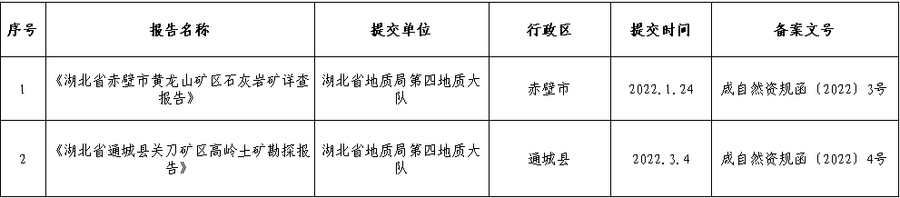 咸寧市自然資源和規(guī)劃局2022年第一季度礦產(chǎn)資源儲量評審備案信息公示