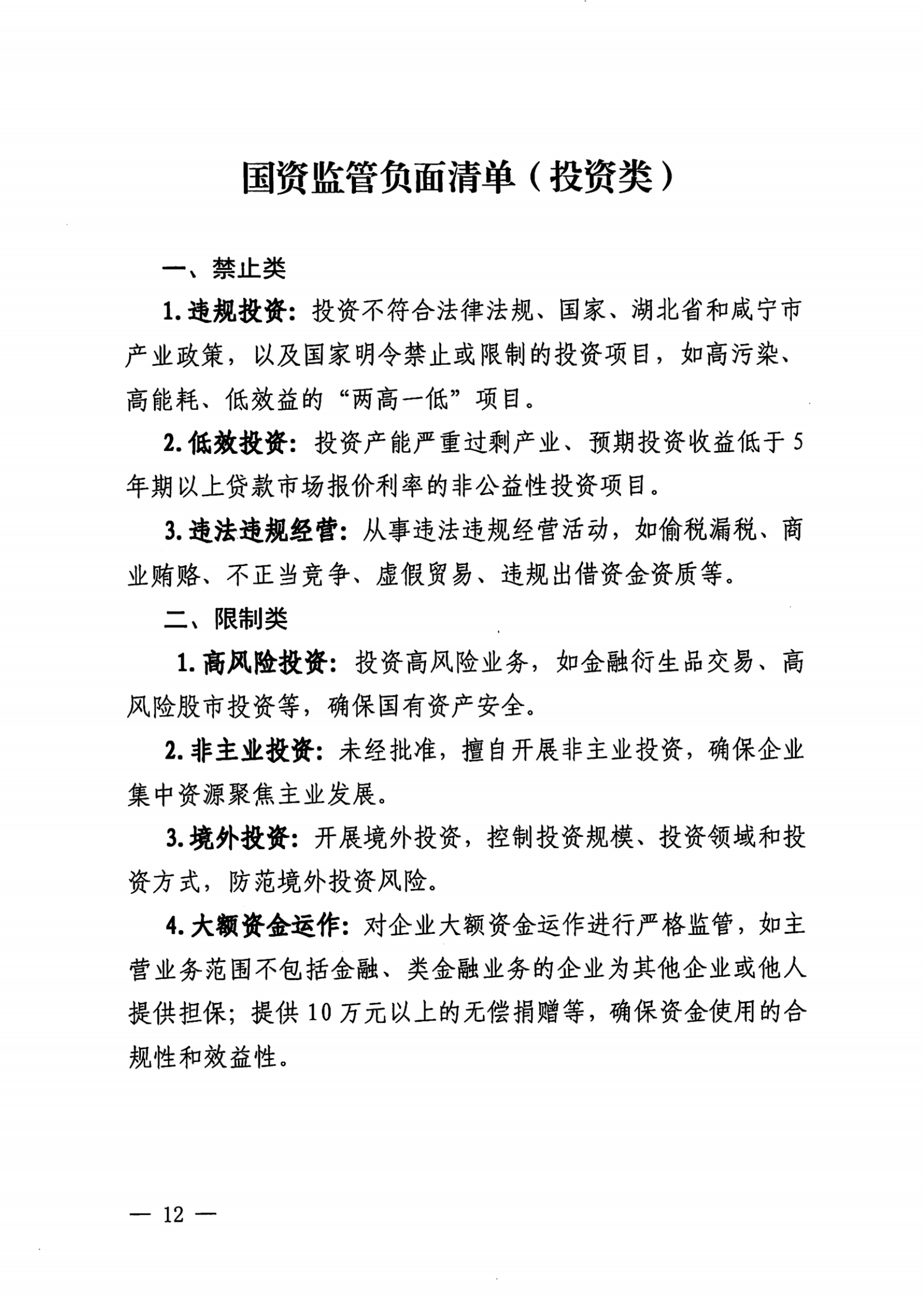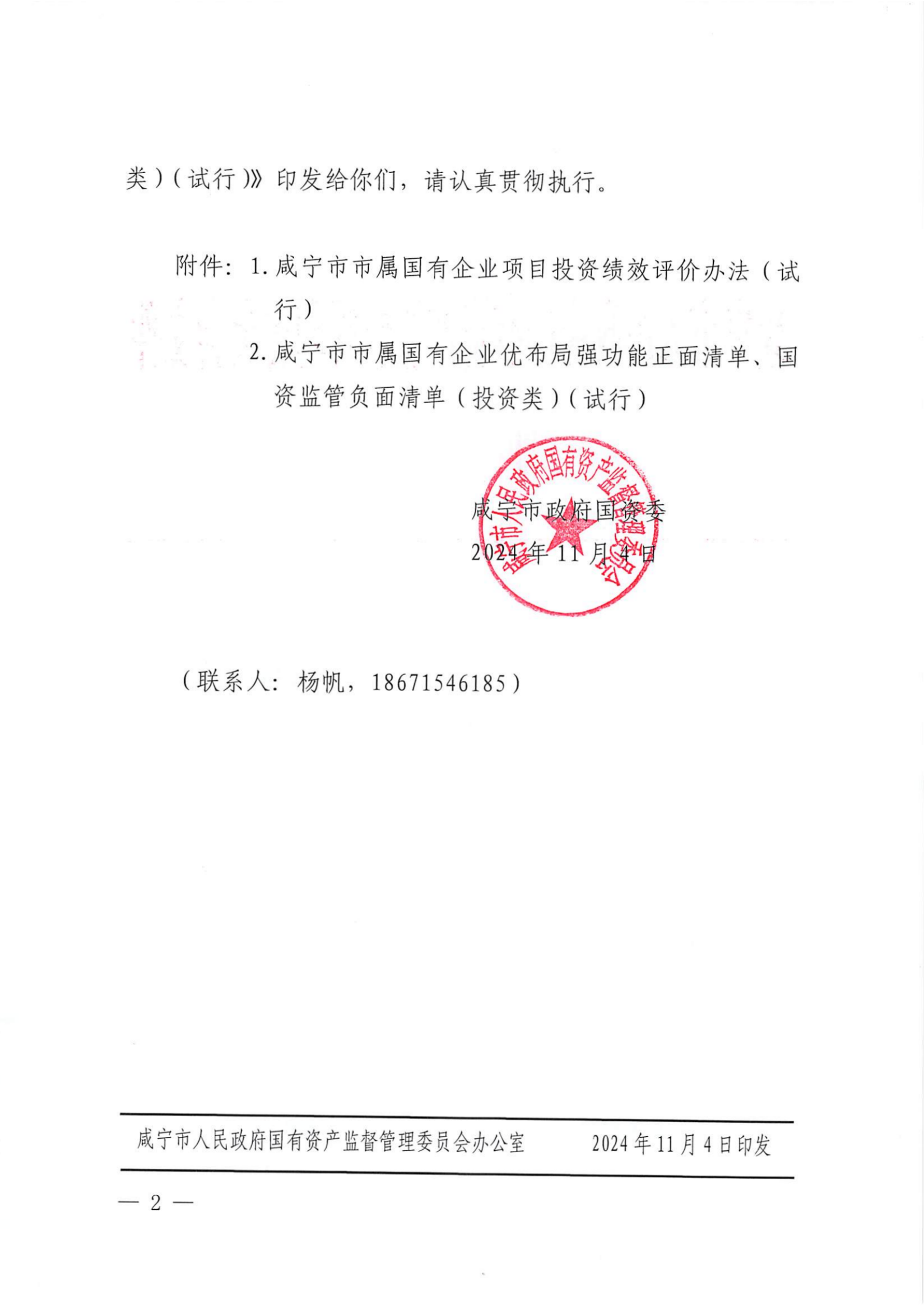 關(guān)于印發(fā)《咸寧市市屬?lài)?guó)有企業(yè)項(xiàng)目投資績(jī)效評(píng)價(jià)辦法(試行)》《咸寧市市屬?lài)?guó)有企業(yè)優(yōu)布局強(qiáng)功能正面清單、國(guó)資監(jiān)管負(fù)面清單(投資類(lèi))(試行)》的通知