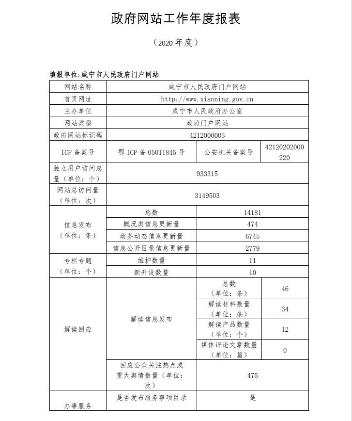 政府網(wǎng)站工作年度報(bào)表(2020年度)