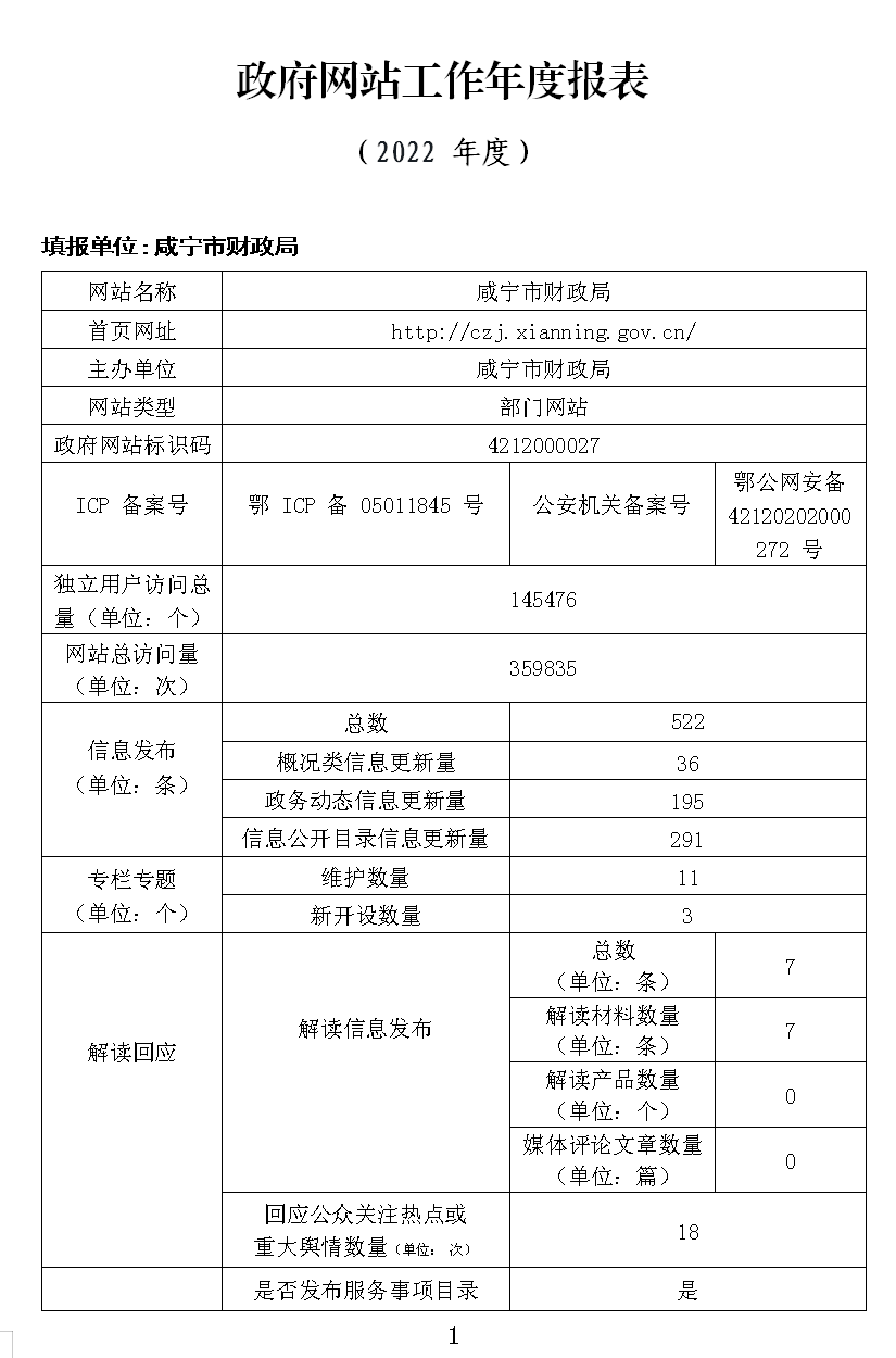 咸寧市財政局政府網(wǎng)站工作年度報表(2022年)