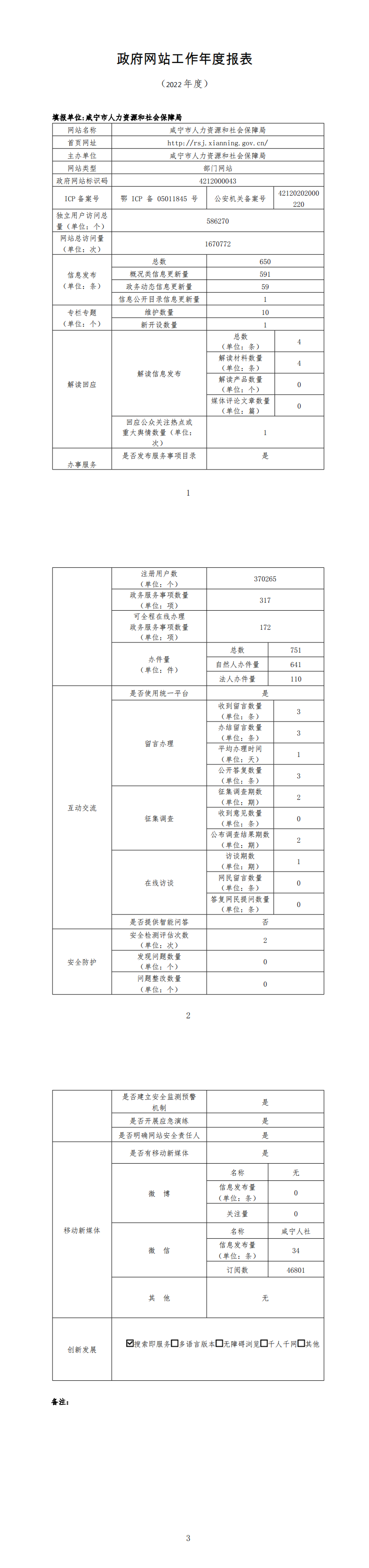 咸寧市人力資源和社會保障局政府網(wǎng)站工作年度報表(2022年)