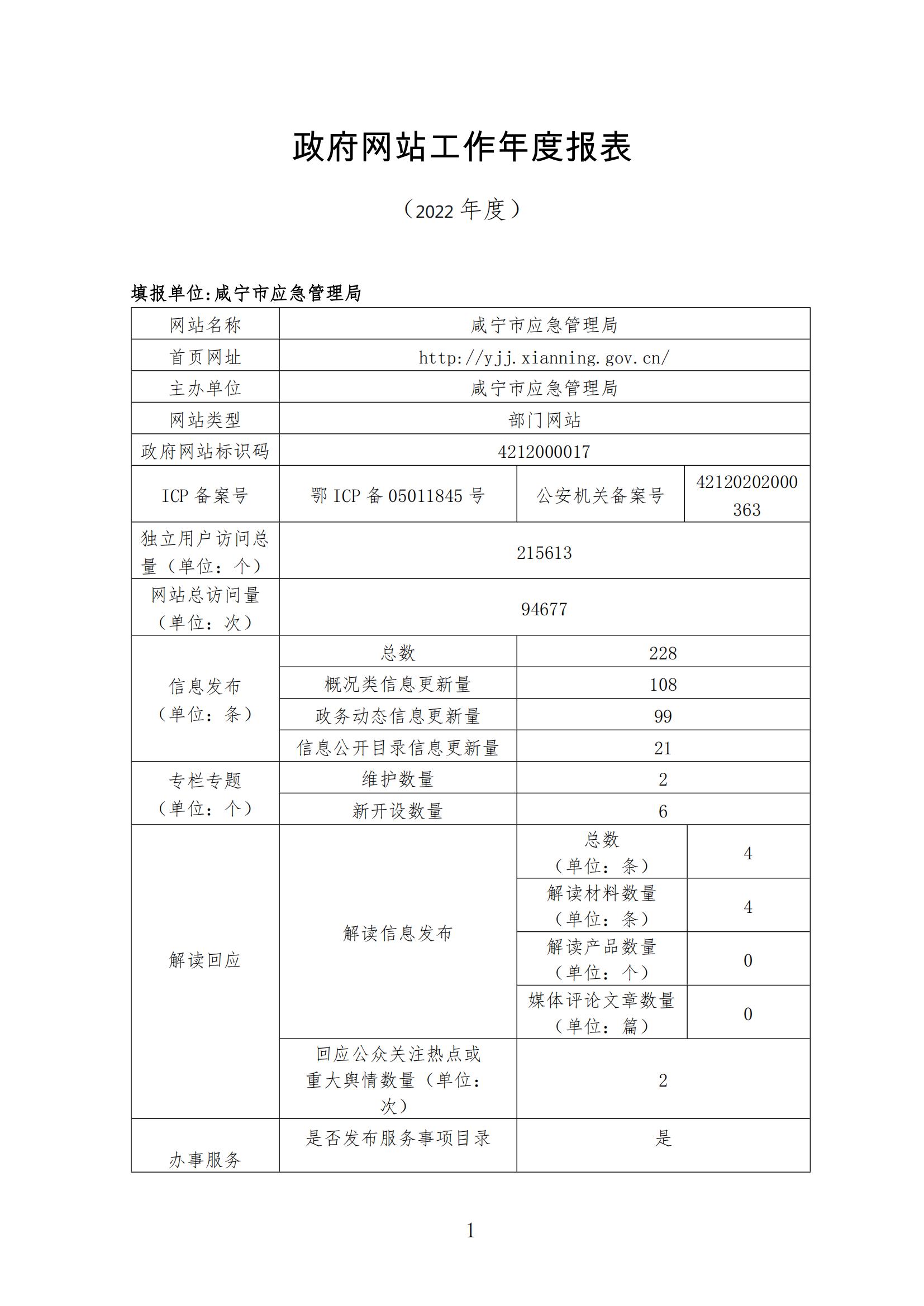 咸寧市應急管理局政府網(wǎng)站工作年度報表(2022年)