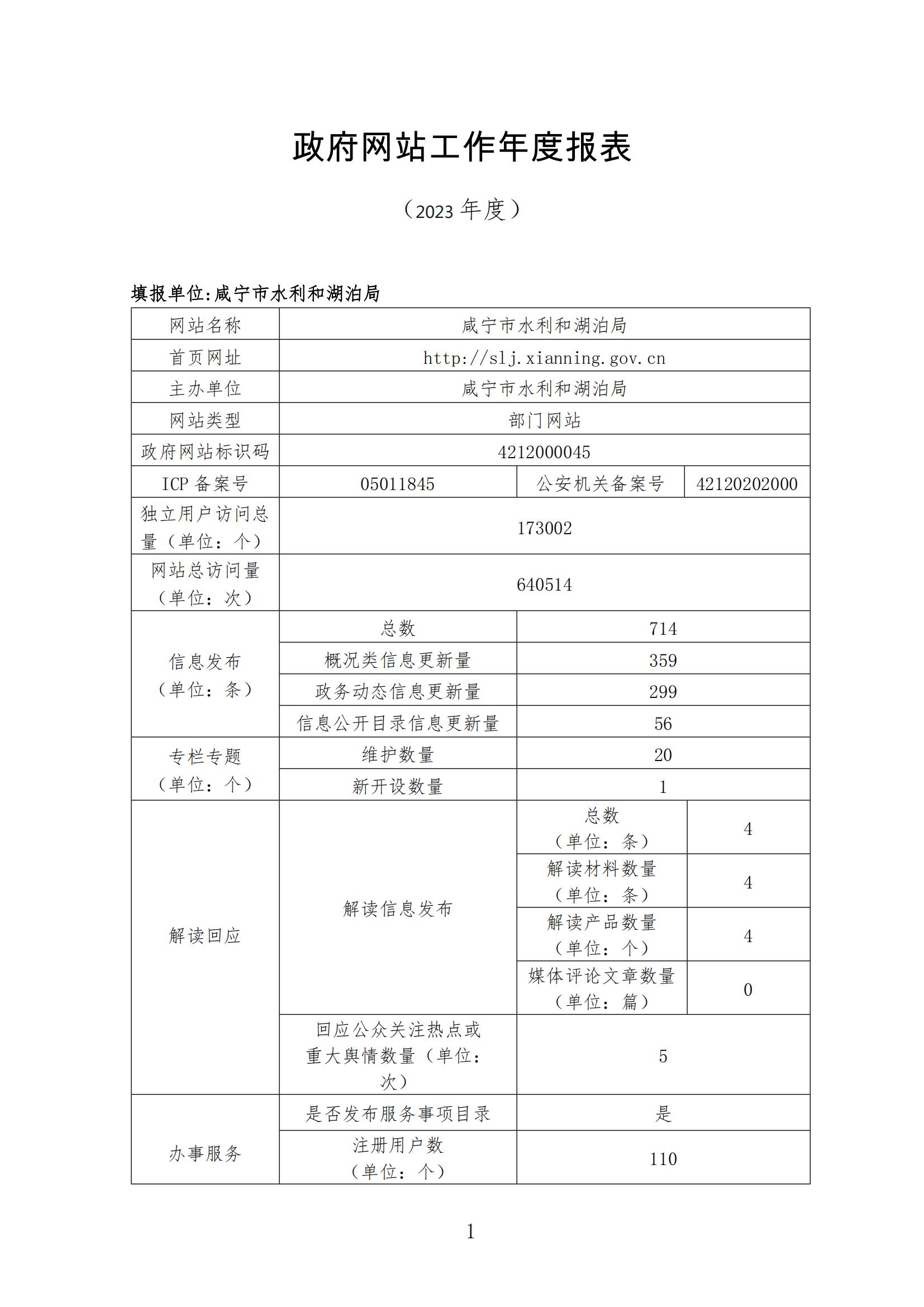 咸寧市水利和湖泊局政府網(wǎng)站工作年度報(bào)表(2023年)