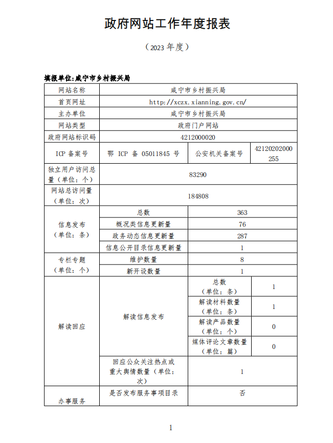 咸寧市鄉(xiāng)村振興局政府網(wǎng)站工作年度報表(2023年)