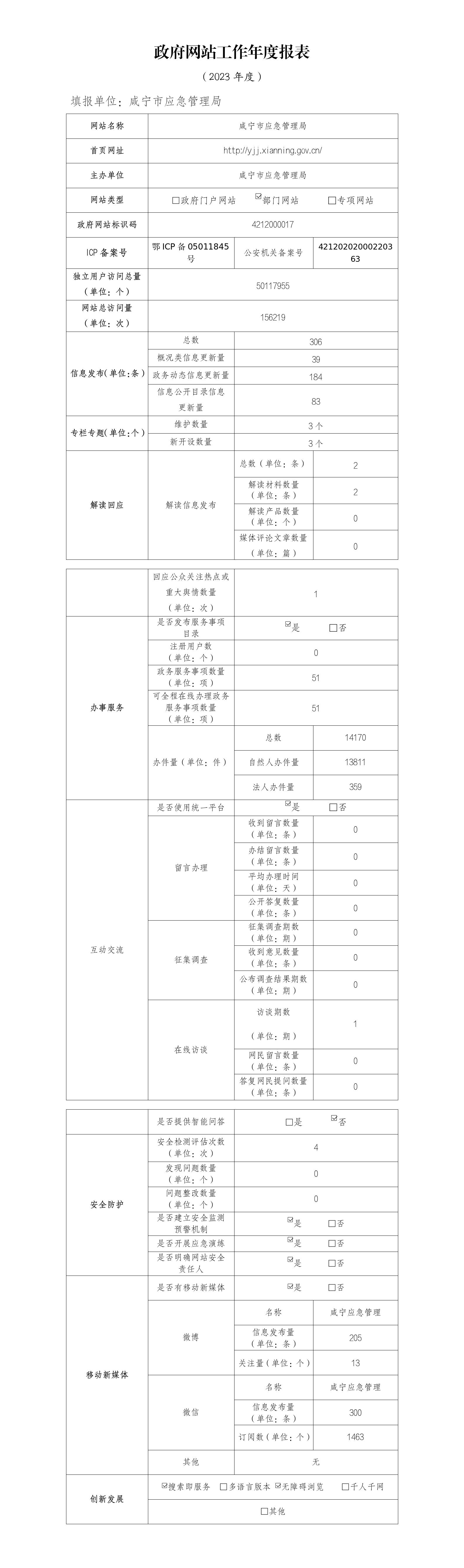 咸寧市應(yīng)急管理局政府網(wǎng)站工作年度報表(2023年)