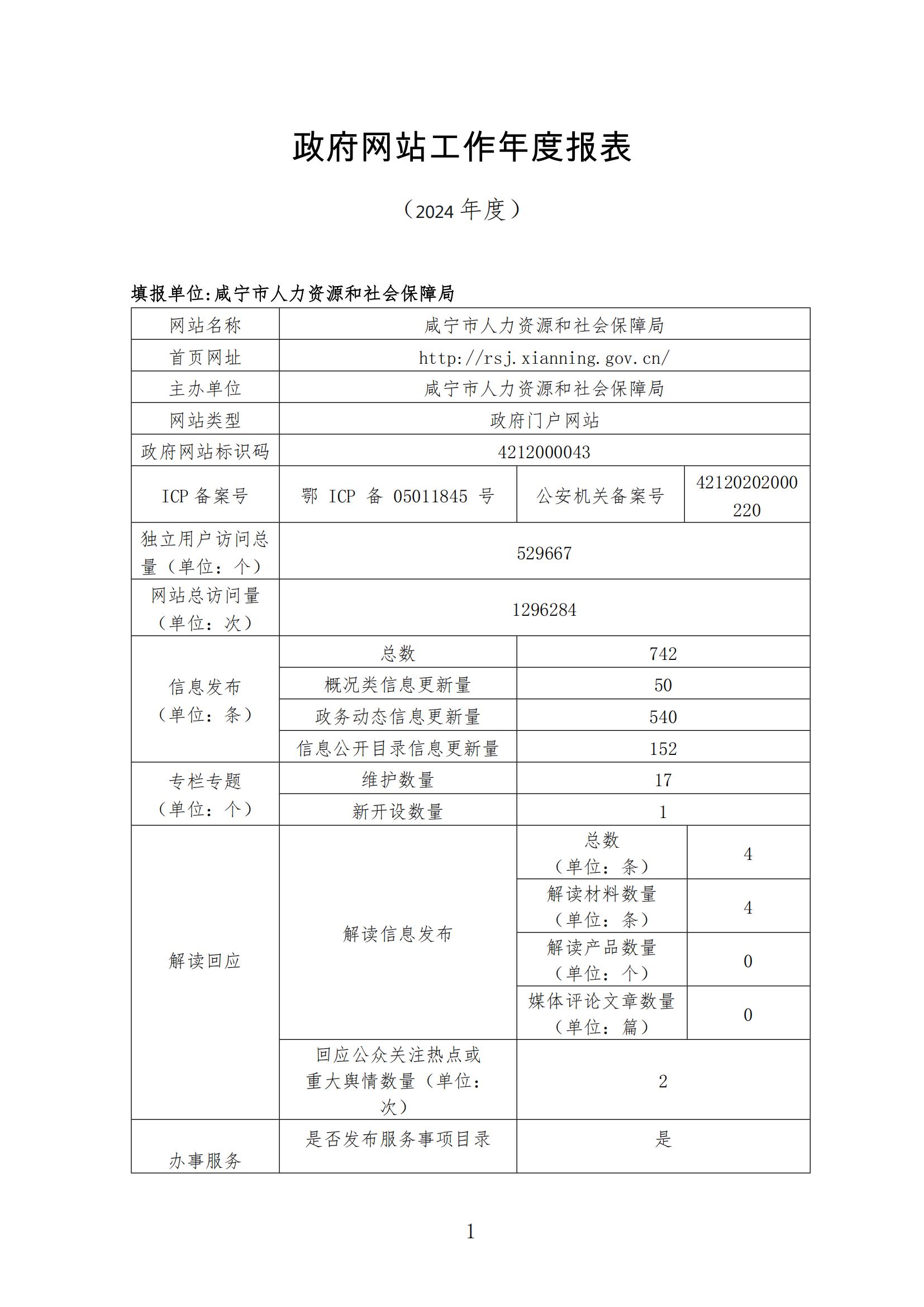 咸寧市人力資源和社會(huì)保障局政府網(wǎng)站工作年度報(bào)表(2024年)