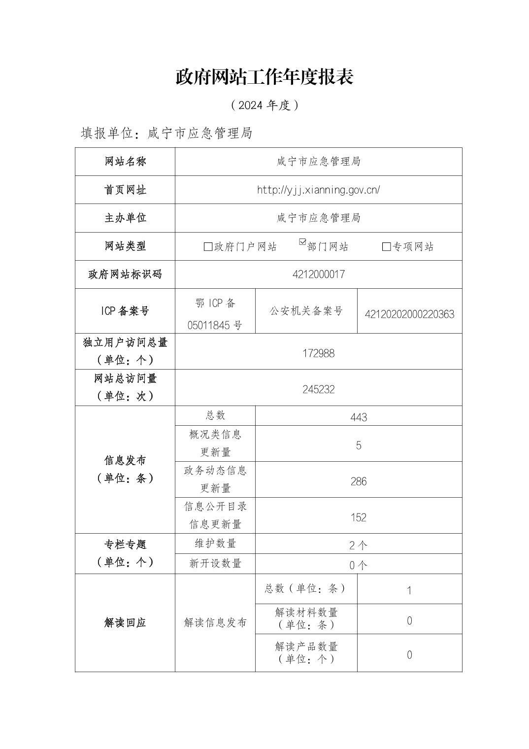 咸寧市應(yīng)急管理局政府網(wǎng)站工作年度報表(2024年)