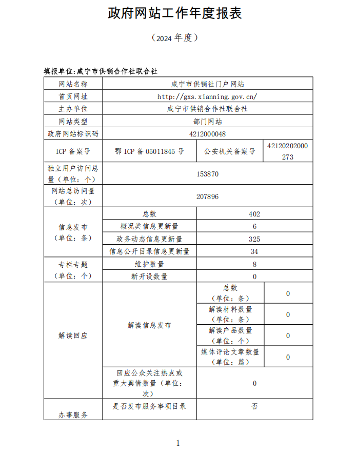 咸寧市供銷合作社政府網(wǎng)站工作年度報(bào)表(2024年)