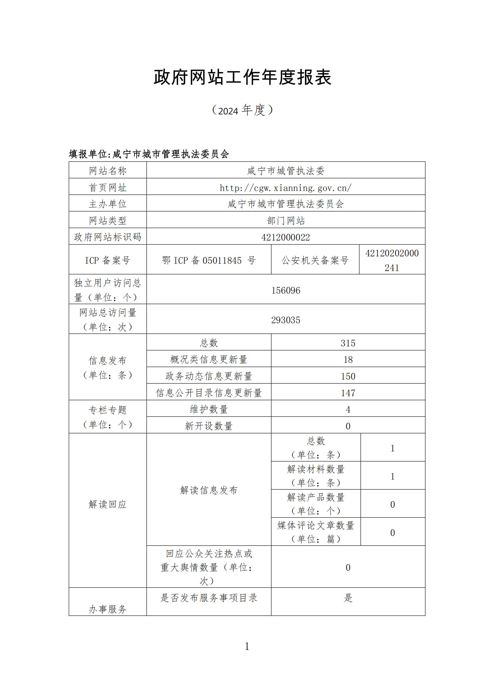咸寧市城市管理執(zhí)法委員會(huì)政府網(wǎng)站工作年度報(bào)表(2024年)