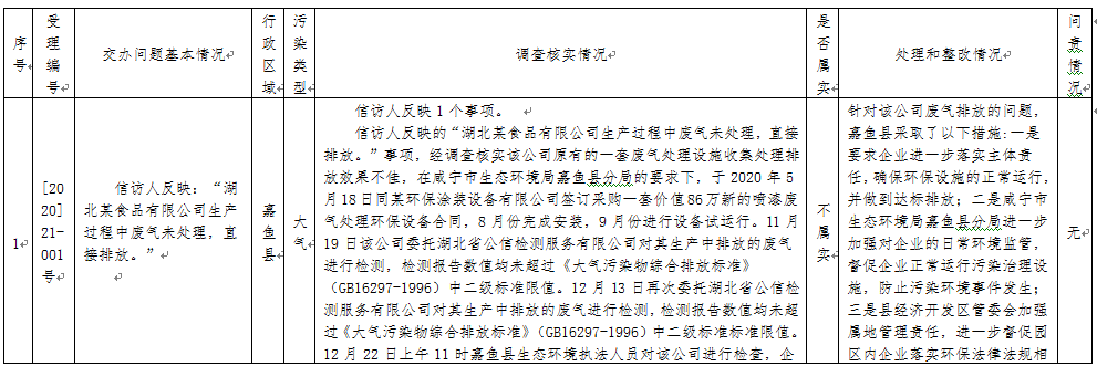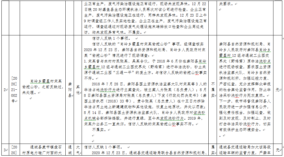 ?2020年12月27日,省第二生態(tài)環(huán)境保護督察組交辦咸寧市第1批生態(tài)環(huán)境問題3件(見附表)。我市高度重視,及時分辦至相關(guān)縣(市、區(qū))、部門進行處理?,F(xiàn)按要求向社會公開。