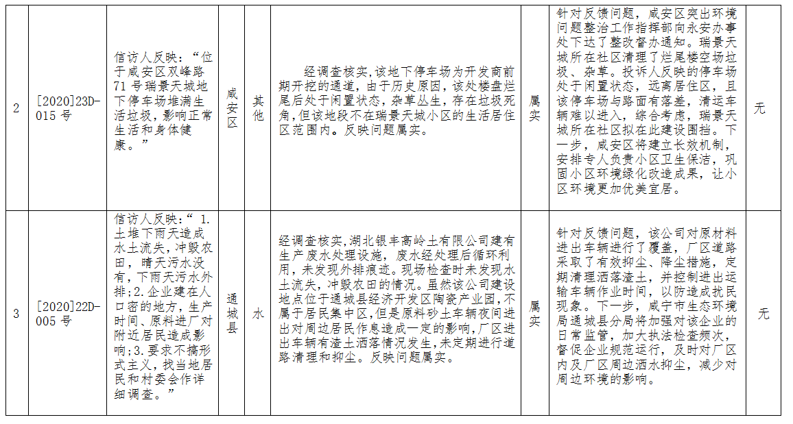2020年12月28日,省第二生態(tài)環(huán)境保護(hù)督察組交辦咸寧市第二批生態(tài)環(huán)境問題3件(見附表)。我市高度重視,及時(shí)分辦至相關(guān)縣(市、區(qū))、部門進(jìn)行處理?,F(xiàn)按要求向社會(huì)公開。