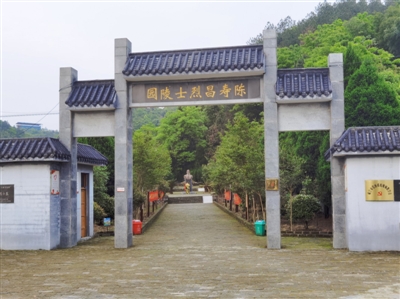 陳壽昌烈士陵園,位于崇陽縣金塘鎮(zhèn)畈上村4組朝育屋后山咀金港河畔,其墓高1.5米、底徑3米,墓前立“陳壽昌烈士之墓”碑。