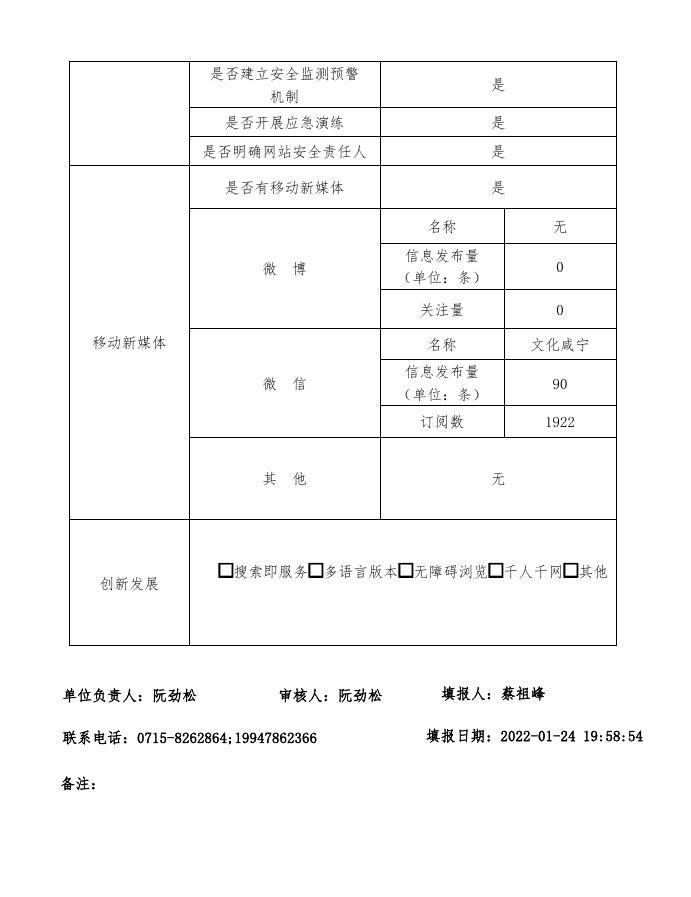 咸寧市文化和旅游局2021年政府網(wǎng)站工作年度報(bào)表
