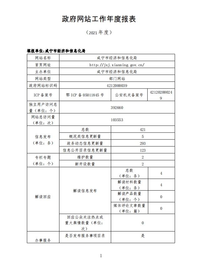 • 名  稱:咸寧市經(jīng)濟和信息化局2021年度政府網(wǎng)站工作年度報表