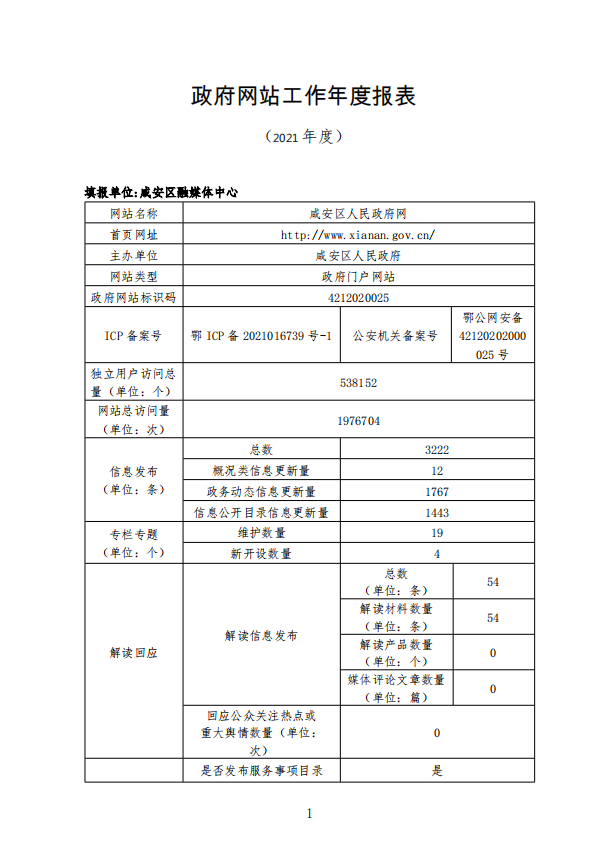 • 名  稱:咸安區(qū)2021年政府網(wǎng)站工作年度報(bào)表
