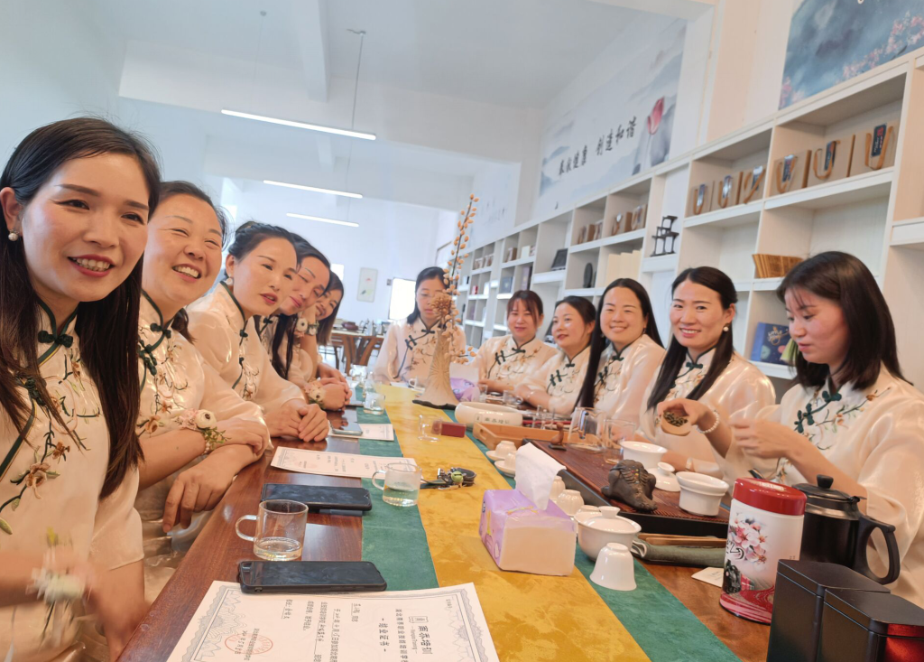 說起開辦茶藝培訓(xùn)學(xué)校的初衷,李琳表示,還得從自己創(chuàng)業(yè)說起。2019年,李琳與好友陳淑娟共同創(chuàng)辦咸安區(qū)淦水瀾亭茶美生活館時(shí)急需要茶藝師,卻四處招不到合適的人選,這種情況下,她們就萌發(fā)了開設(shè)一個(gè)培養(yǎng)茶藝師的學(xué)校,當(dāng)她們把想法與委托招聘的咸安區(qū)人社局相關(guān)負(fù)責(zé)人溝通后,立即獲得認(rèn)可。經(jīng)過一年半的籌備,2020年10月,湖北南喬職業(yè)技能培訓(xùn)學(xué)校正式開學(xué)。學(xué)校除了培養(yǎng)專業(yè)的茶藝師外,還免費(fèi)為城鎮(zhèn)失業(yè)人員、貧困家庭子女、農(nóng)村轉(zhuǎn)移就業(yè)勞動(dòng)者等開展公益培訓(xùn),每年培訓(xùn)技能茶葉種植、加工、評(píng)茶等專業(yè)人才600余人,直接帶動(dòng)就業(yè)人員100余人。
