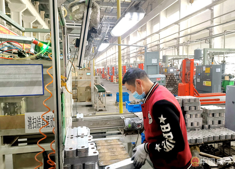 2月7日,赤壁高新區(qū),赤壁銀輪工業(yè)換熱器有限公司生產(chǎn)車間設(shè)備林立、機器轟鳴,工人有序地忙碌。