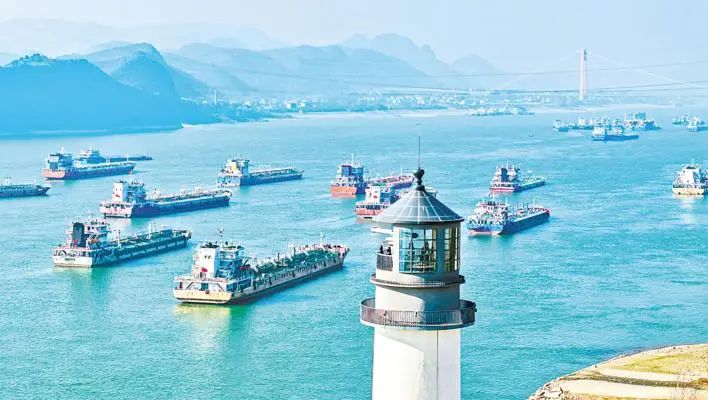 長江宜昌段清澈的江面千帆競發(fā),整治后的兩岸景觀如畫。(湖北日報全媒記者 劉曙松 通訊員 譚雪姣 攝)
