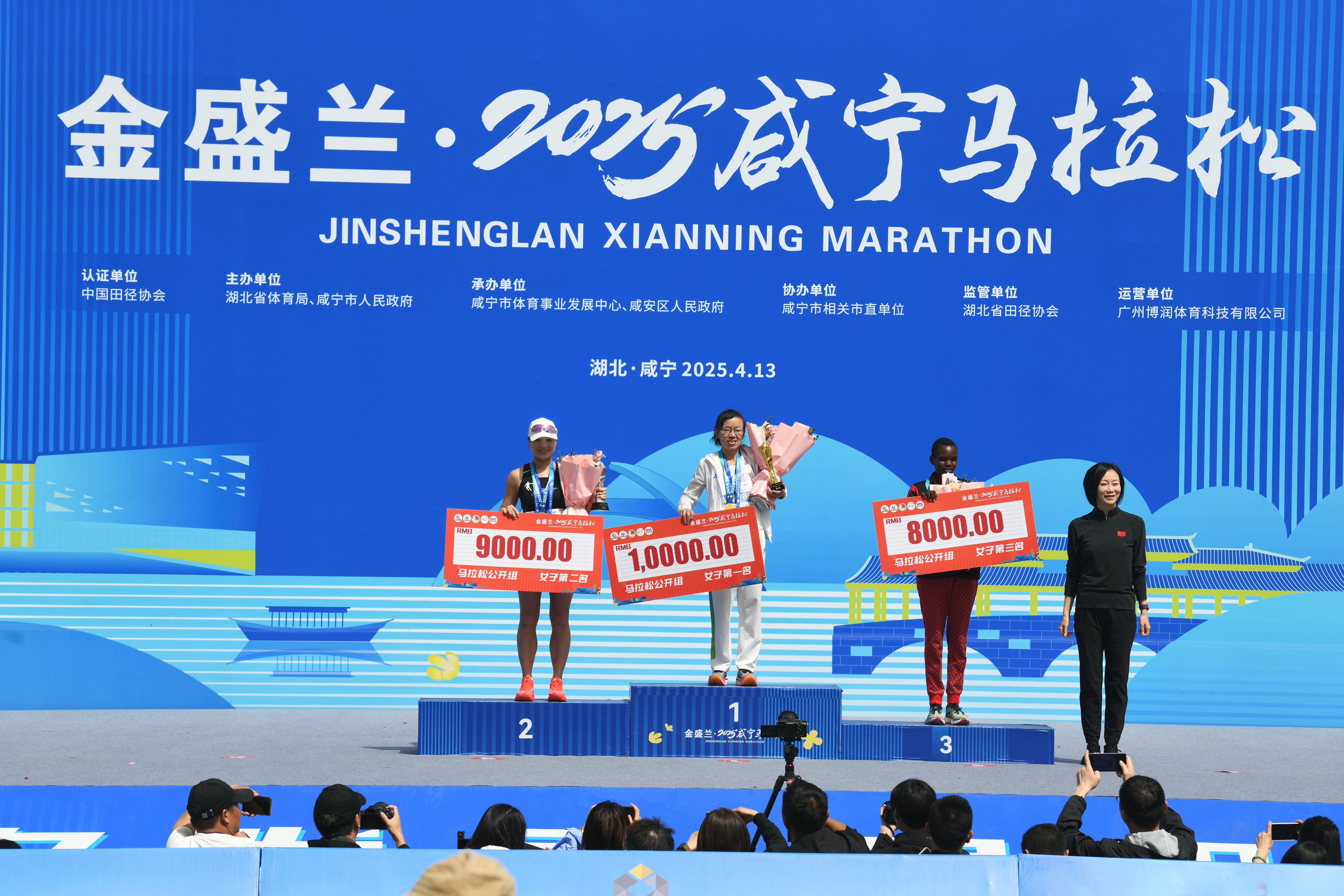 全馬女子組前三名頒獎。